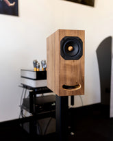 OGY uses an excellent fullrange driver, the EMS LB5 (10 cm diameter) designed by French legend Mr. Michel Fertin, who devoted his life to perfecting the sound of the single driver wide band technology. These are handmade in France by Katy Fertin EMS Speaker. Its speed is astonishing allowing for smooth presentation of all details in the recording.